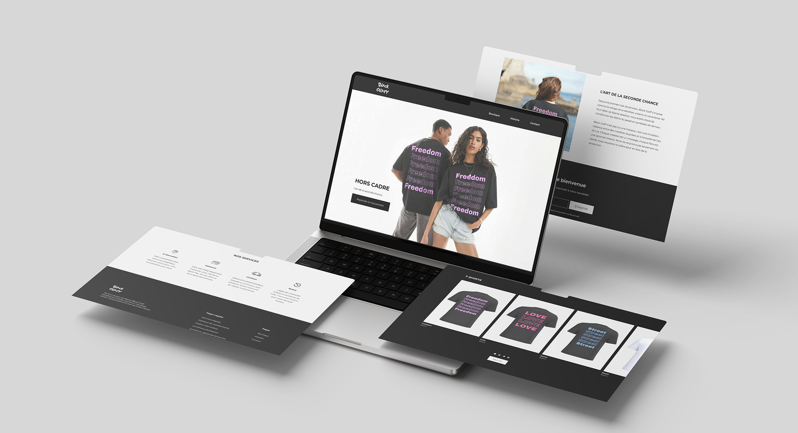 Black Graff est une marque de prêt-à-porter éco-responsable conçue comme un manifeste de liberté et de réactivité créative. L’objectif était de bâtir une identité visuelle percutante et engagée, de la conception à la réalisation, en seulement 24 heures. Ce projet « commando » reflète l’urgence de s’affranchir des codes établis pour proposer une alternative éthique et radicale.